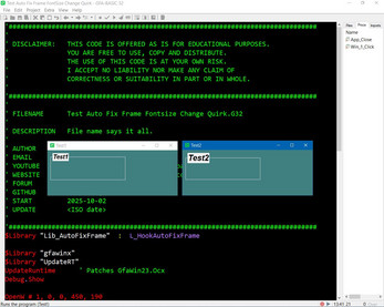 We're diving into a hands-on educational example that tackles one of the more annoying quirks in Windows UI development: font size glitches in Frame controls. This program spins up two windows, each featuring a styled Frame with custom font settings—and it does so with finesse.